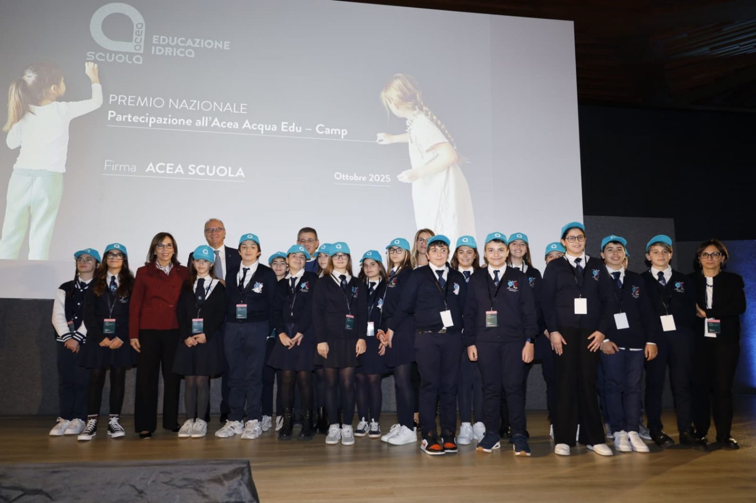 A lezione di educazione idrica con ACEA. Il ministro dell’Istruzione e del Merito Giuseppe Valditara e la presidente di ACEA Barbara Marinali hanno premiato oggi le scuole vincitrici del contest nazionale 2024-2025 “Alla ricerca della goccia perduta: riuso e risparmio dell’acqua”, nell’ambito del progetto ACEA Scuola Educazione idrica in cui si chiedeva di realizzare un cortometraggio sul risparmio e riuso dell’acqua. (Comunicato stampa Acea)